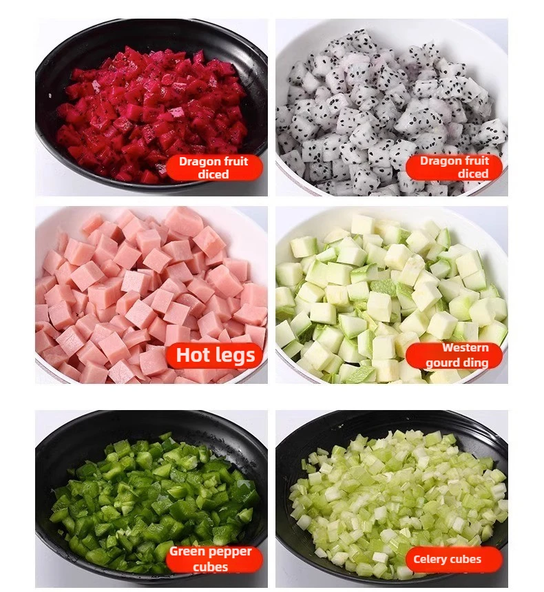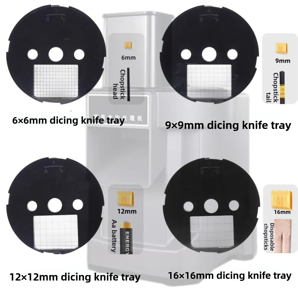 Optional: 6 x 6 mm cubes; 12 x 12 mm cubes; potato stripes cutter discs