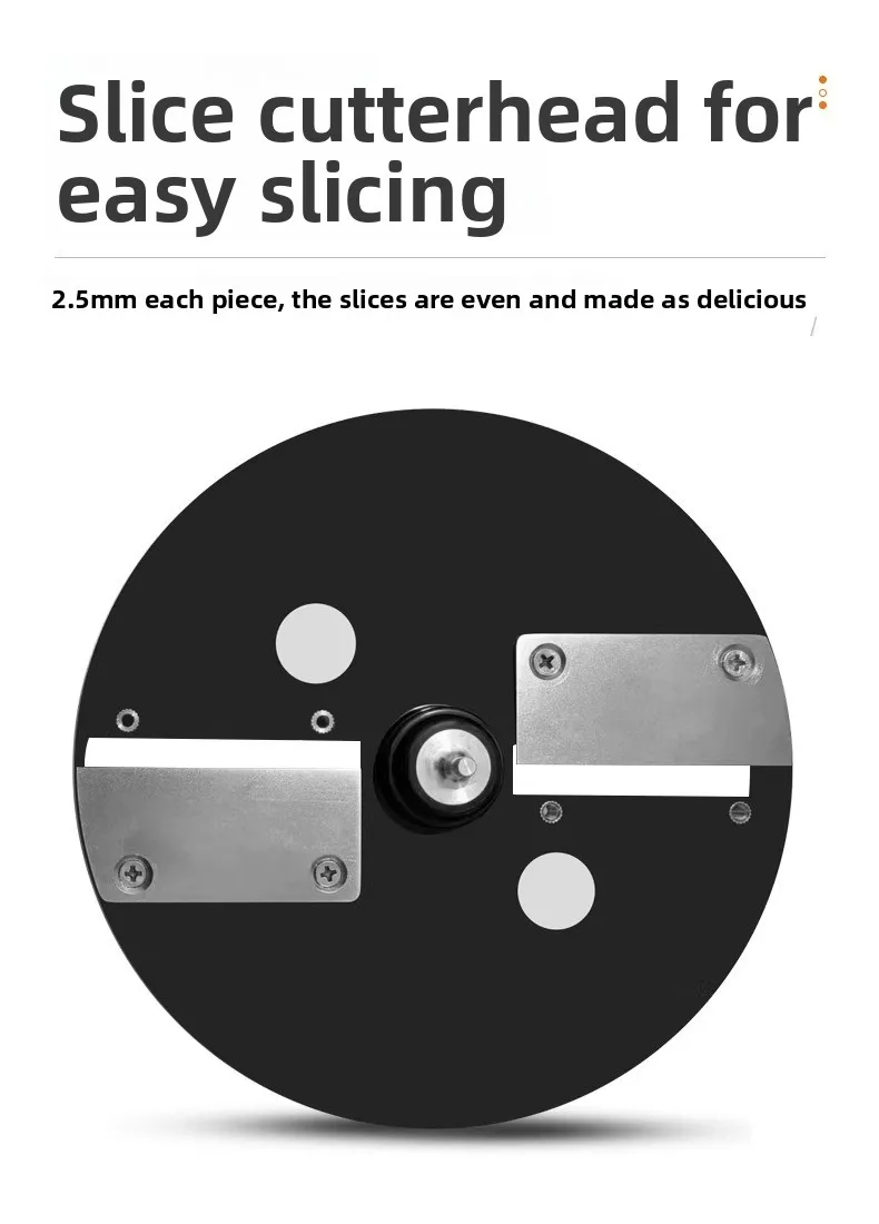 Standard configuration: 9 x 9 mm cubes; 2.5 mm slices; 2.5 mm julienne strips