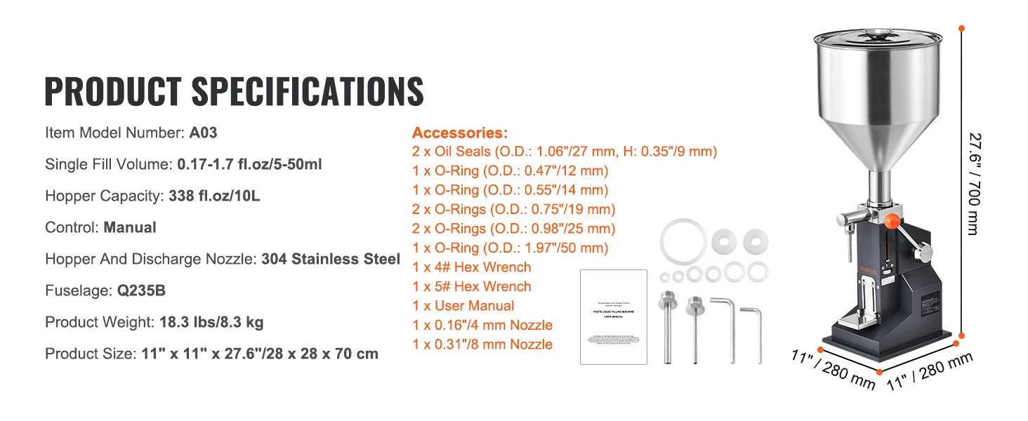 Reinforced Handle: Say goodbye to strenuous filling! Our manual filling machine features a reinforced handle with a smart spring design. It's super user-friendly – just pull down, and you're ready to fill. No more worrying about spring breakage. It's all about durability and effortless operation.