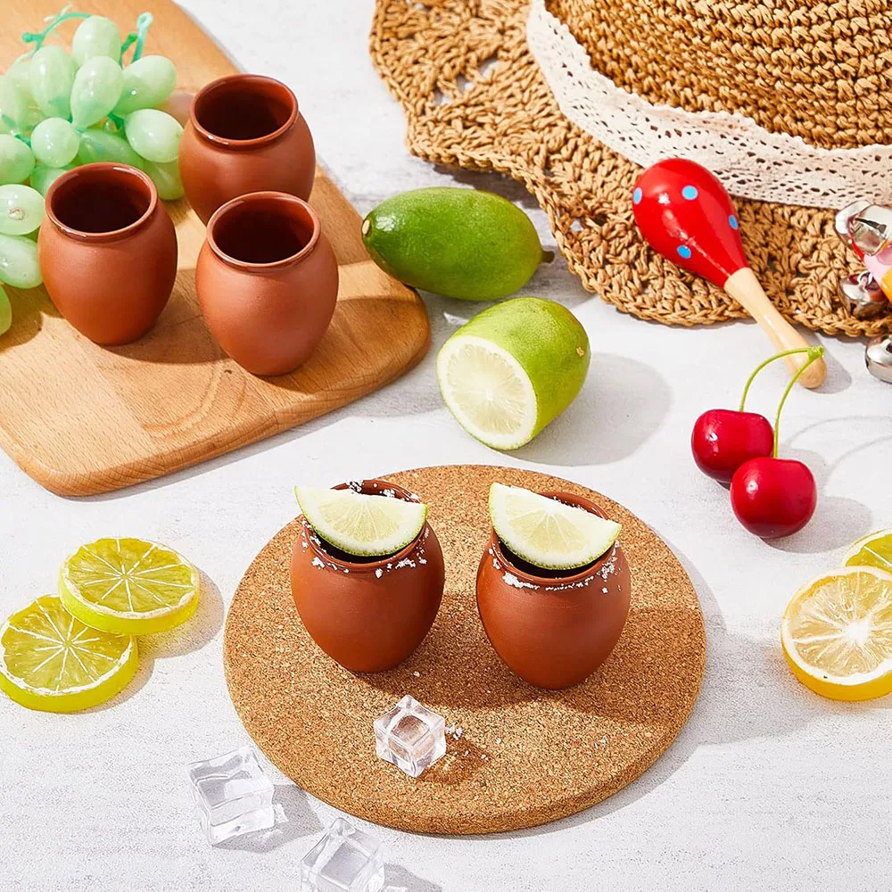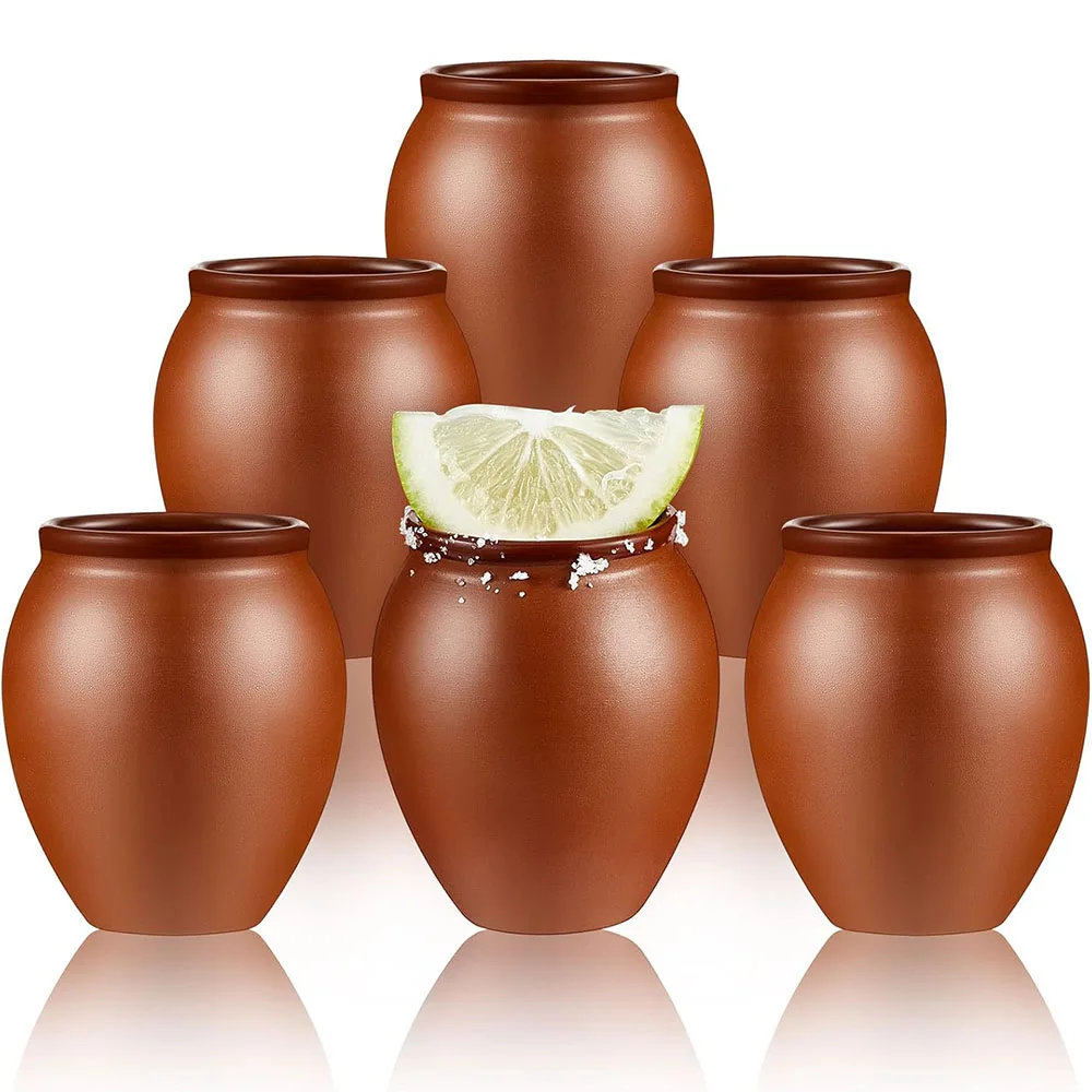 Mini Clay Tequila Shot Glasses Cantaritos de Barro Mexicanos for Tequila,Margaritas,Mojitos Natural Clay Cups for Taco Tuesdays