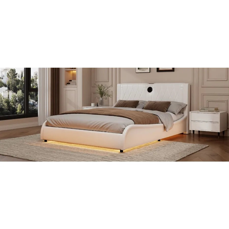 Queen Size Luxurious Faux Leather Upholstered Platform Bed with Thickened board Bluetooth Speakers and RGB LED Light No Box Spr
