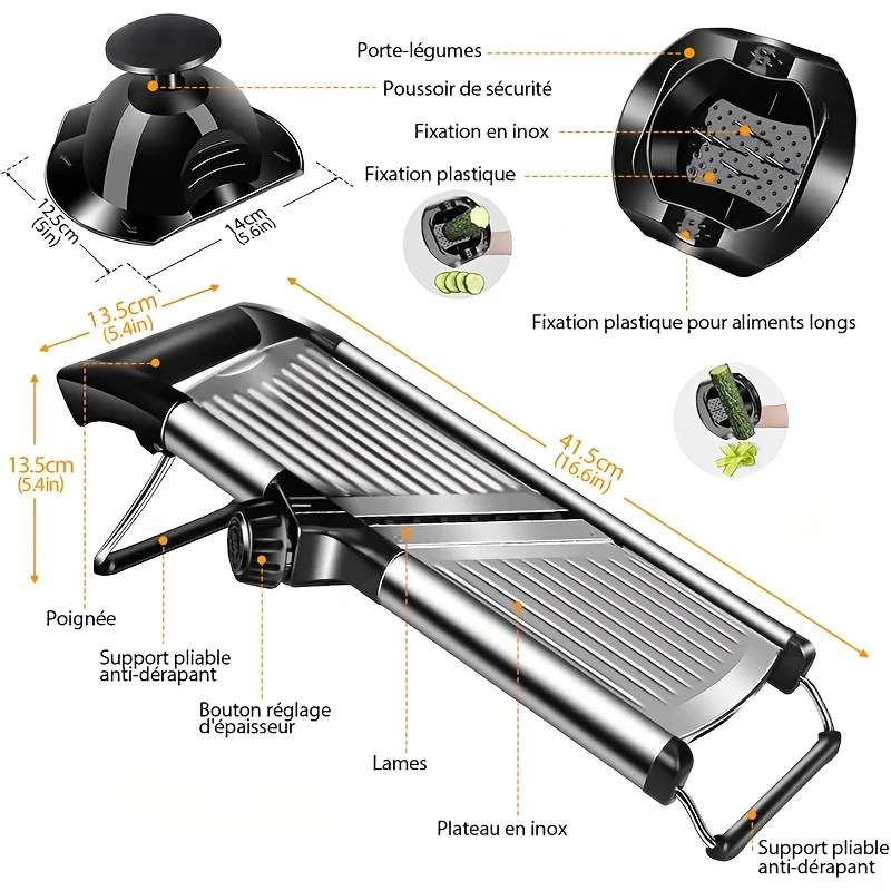 Stainless Steel Mandoline Slicer with 5 Blades & Holder - Safe Hand Guard Food Chopper for Vegetable Fruit, Easy Clean
