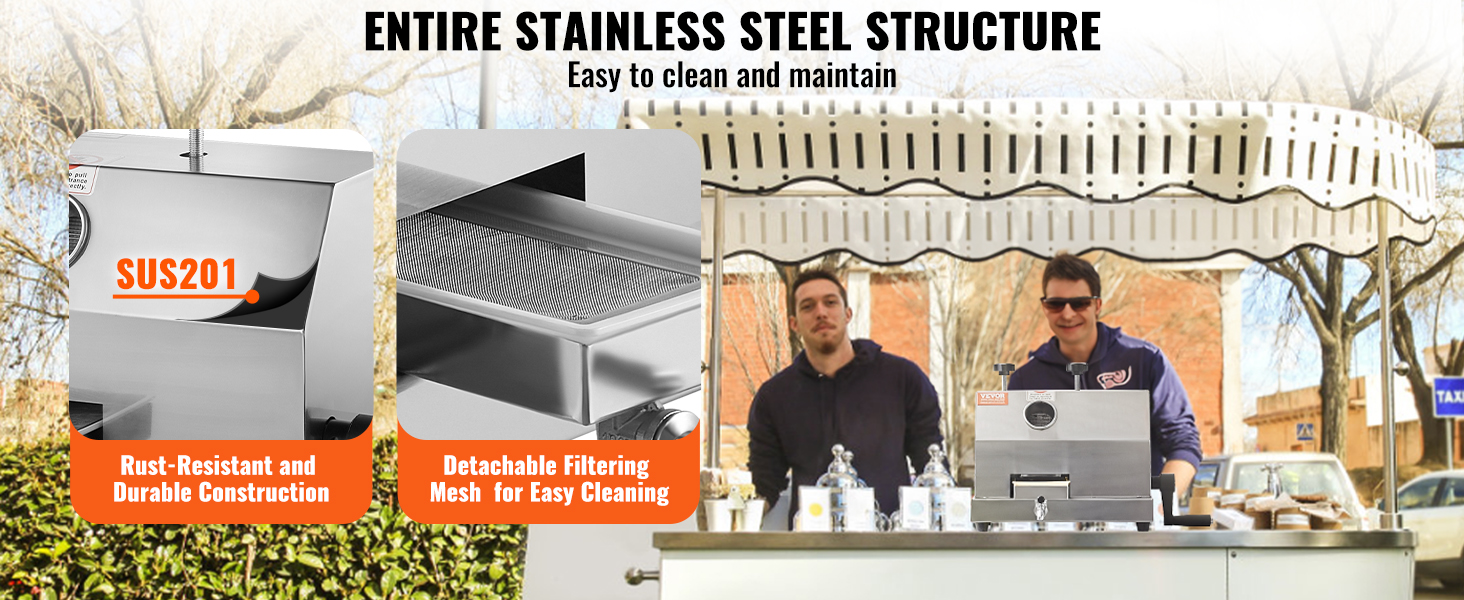 VEVOR space-efficient sugar cane juicer machine is a versatile choice that can be used in a variety of settings, such as beverage shops, outdoor stalls, fruit vendors, hotel kitchens, and beyond. Delight in the delightful sugarcane juice whenever and wherever you please.